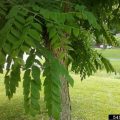 Pousse rose devenant vert vif, jaune à l’automne. Nombreux folioles ovales.